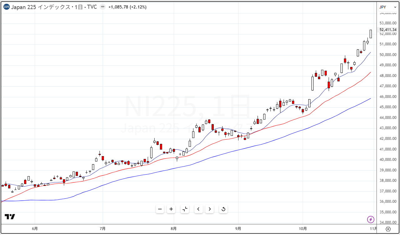 2025年10月31日の日経平均チャート(日足)