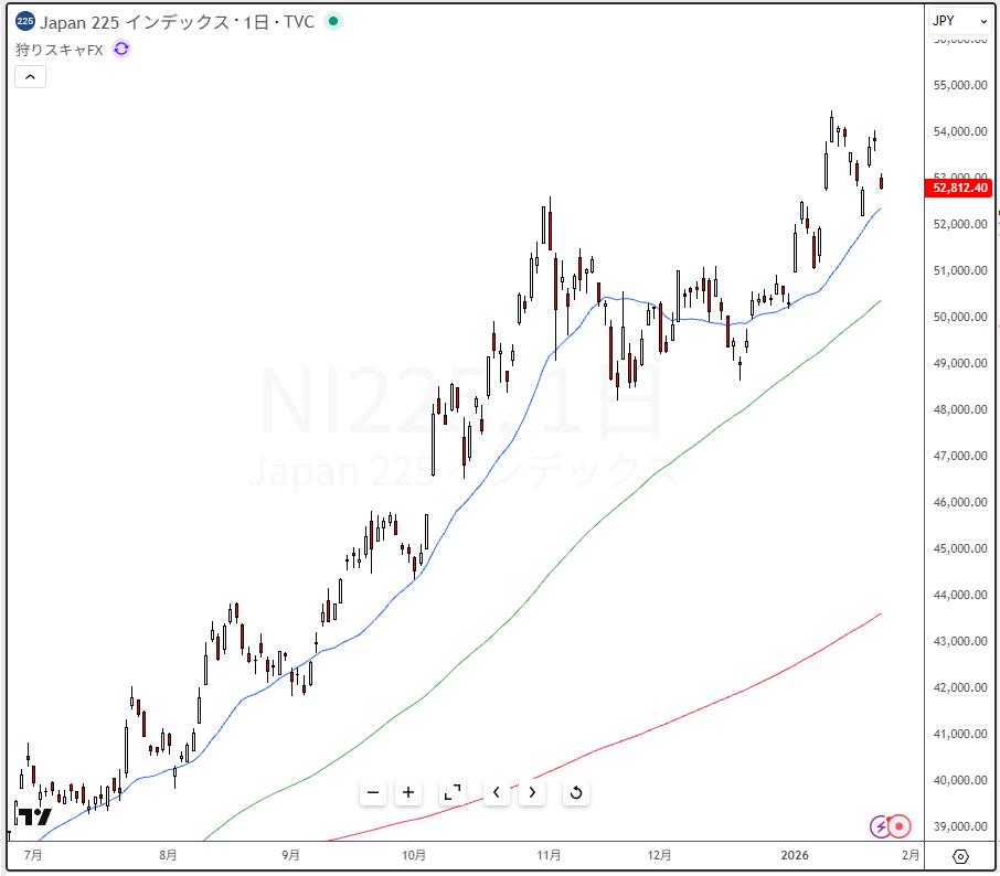 2025年1月23日の日経平均チャート(日足)