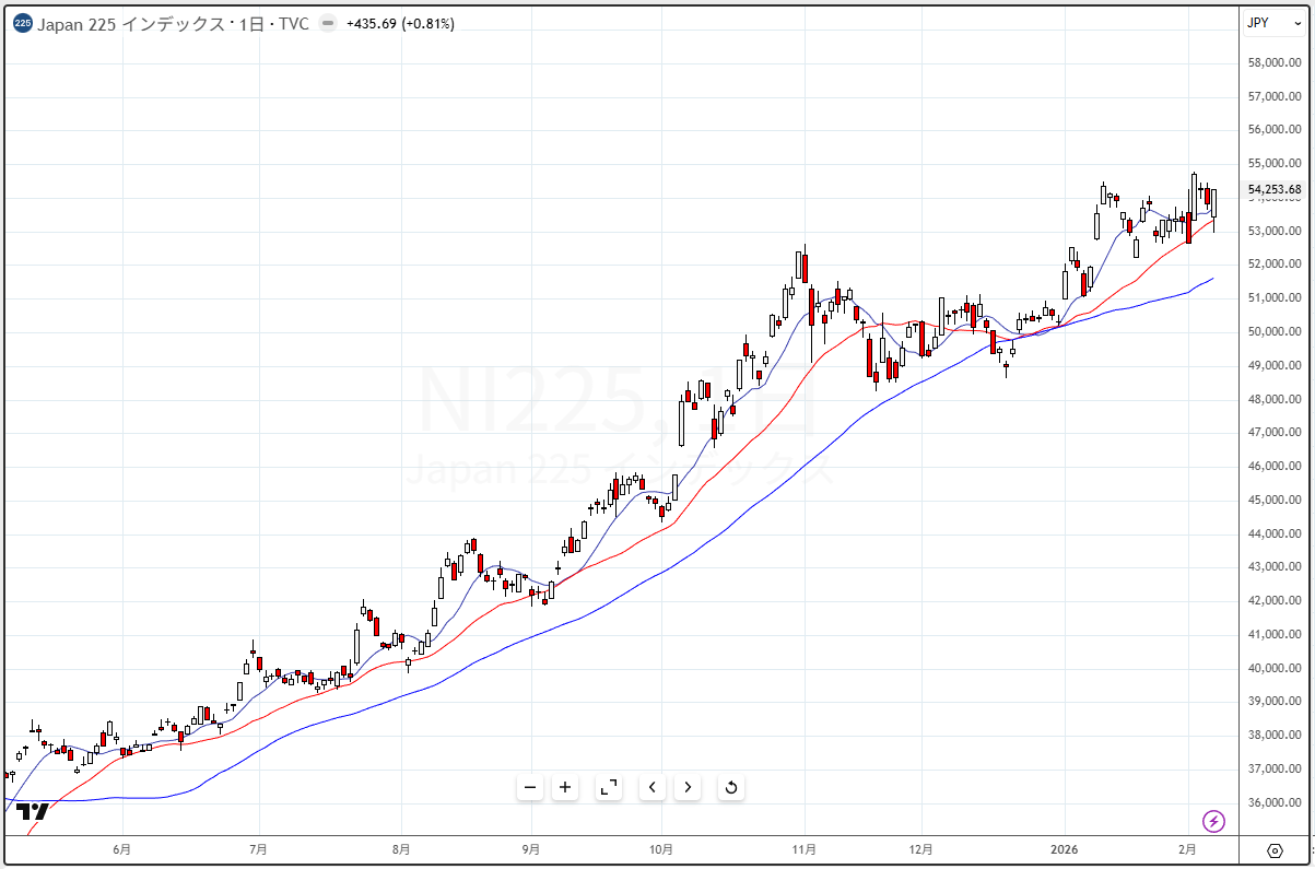 2025年2月6日の日経平均チャート(日足)